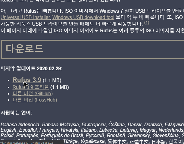 그리고 가끔씩 이렇게 윈도우10 usb 부팅디스크의 만들기를 하다 보면 오류가 생기는 경우가 있는데, 이럴 땐 이미지를 받아주세요. 그리고 아래 그림의 주소에서 Rufus도 받아주세요.