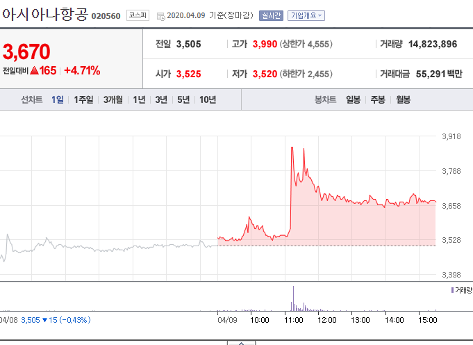 아시아나항공 주가의 체크 : 요즘 세계적으로 퍼진 이슈 때문에 비행기를 타는 사람이 많이 줄었고, 일부 셧다운을 하는 회사도 늘었는데, 이런 어려운 상황 속에 제목의 종목은 고개를 들고 있습니다.