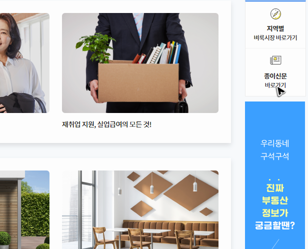 혹시 이렇게 홈페이지 구성으로 벼룩시장 구인구직의 사이트를 둘러보는 것이 아니라 종이 형태로 보고 싶으시다면, 첫 화면으로 돌아와서 우측 상단에 있는 종이 바로가기 버튼을 눌러주세요.
