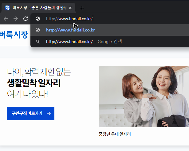 특별히 숨겨진 상태로 아는 사람들만 찾아갈 수 있는 비밀스러운 페이지가 아니기 때문에 검색하면 바로 좋은 직장을 알아보기 위한 곳으로 이동할 수 있지만, 그냥 [findall.co.kr]를 입력해서 벼룩시장의 구인구직하는 사이트로 찾아가는 것이 더 편해요.