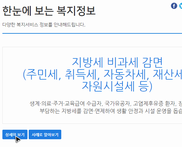 항목을 눌렀을 때 나오는 페이지에서 상세히 보기를 누르면, 선택한 기초생활수급자의 혜택에서 보다 자세한 내용들을 열람할 수 있으니, 이 부분도 체크를 해보시면 좋을 것 같아요.