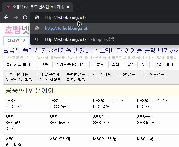 다만, 어떤 채널의 tv 방송을 보기 위해서 항상 사이트를 검색하고 찾아가는 것은 아무래도 귀찮은 일이 될 수 있어요. 그래서 저는 아래 그림의 주소를 애용하고 있습니다.