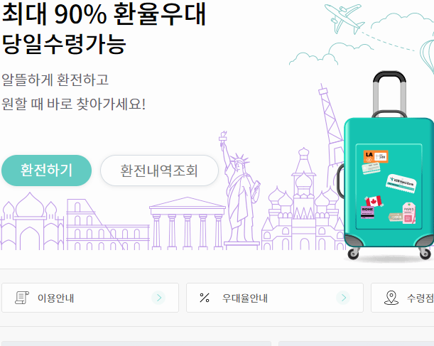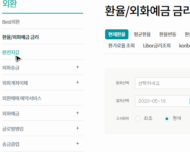 이렇게 은행을 통해서 달러나 유로, 엔화 등을 살펴보면 빠르게 환전을 할 수 있다는 것이 장점일 것입니다. 혹시 하나은행 환율을 조회와 함께 환전까지 하실 계획이라면 왼쪽 메뉴를 활용하시면 될 것 같아요.