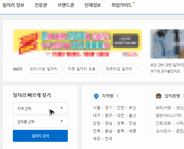 여담으로 지역이 정리되어 있었던 화면에서 지역 버튼을 누르고 페이지 이동을 한 뒤에 상단을 살펴보면 벼룩시장 구인구직이 다시 한 번 정리되어 있으니, 이 부분을 활용해보셔도 좋을 것 같아요. 이상입니다.