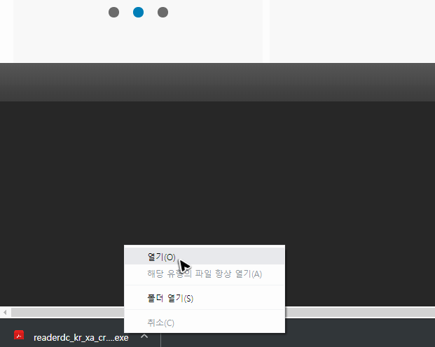 좌우간, 이렇게 adobe 홈페이지에서 아크로벳리더 무료를 다운로드한 뒤에는 받은 파일을 실행해서 프로그램을 준비해주시면 됩니다. 준비 과정은 워낙 간단해서 따로 설명할 부분도 없을 것 같아요.