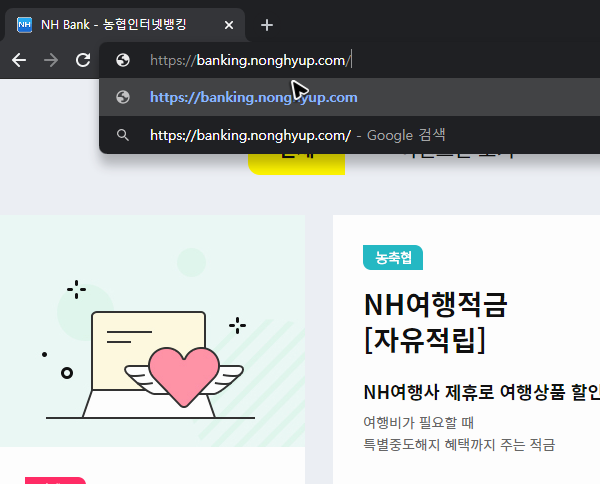 아는 사람만 찾아갈 수 있는 어떤 비밀스러운 사이트가 아니죠? 그래서 검색하면 사이트를 바로 찾을 수 있지만, 그래도 [banking.nonghyup.com]를 주소창에 입력해서 농협에서 공인인증센터의 홈페이지를 찾는 것이 더 간편합니다.