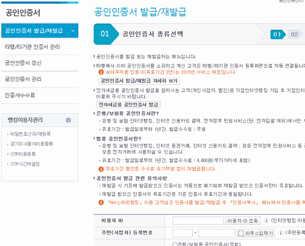아마 파일을 발급하거나, 재발급을 하기 위해서 농협 공인인증의 센터를 찾는 분들이 가장 많으실 것 같아요. 이럴 땐 그냥 발급/재발급이나 갱신을 누르고, 사이트에서 요구하는 정보들을 채우며 과정을 진행하면 됩니다.