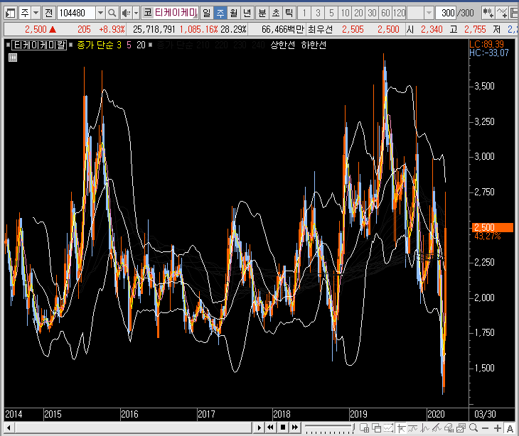 티케이케미칼 주가의 분석 : 화학소재를 전문으로 하고 있는 회사인데, 이 종목의 차트는 사실 회사가 하는 일보다는 엮인 테마의 영향을 더 많이 받고 있는 상황이죠?