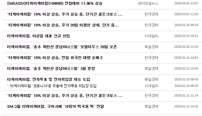 그리고 테마의 영향 덕분에 최근 며칠 동안은 상당히 큰 폭으로 상승하는 흐름을 보여주었습니다. 그래서 이 종목을 주시하는 분들도 많은데, 아래 티케이케미칼의 주가와 앞으로의 주식 전망을 엮었으니, 확인해보시면 좋을 것 같습니다.