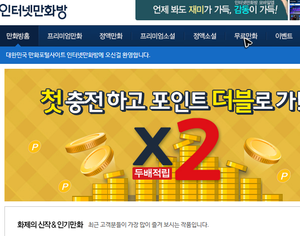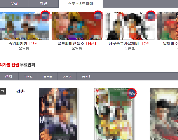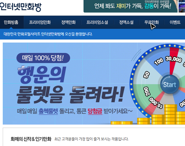 여기는 앞서 얘기한 페이지보다 전문적이며, 전체가 무료만화를 보는 곳이라 할 수는 없습니다. 하지만 페이지를 찾아간 뒤에 상단의 카테고리 메뉴를 보면 우리가 찾고 있는 그 메뉴를 확인할 수 있을 거예요. 물론 클릭하면 됩니다.