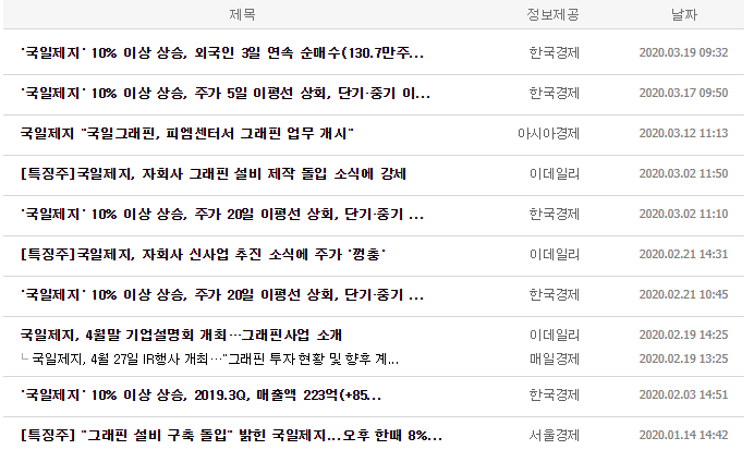 국일제지 주가 흐름 분석 : 어려운 시장 상황 속에서 잘 방어하는 종목들이 있습니다. 제목에 적어둔 종목도 그 중 하나라 할 수 있을 것입니다. 정말 그래핀은 잊을만 하면 신호가 오는군요.