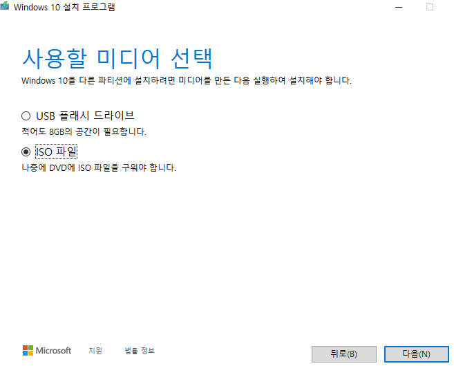 이제 미디어를 선택하는 부분이 나올 거예요. 저장 장치를 컴퓨터에 연결해둔 상태라면 플래시 드라이브를 선택한 뒤에 윈도우10 usb 부팅디스크의 만들기를 진행하면 됩니다. 이미지만 받을 수도 있는데 오류가 생기면 이 기능을 쓰면 돼요.