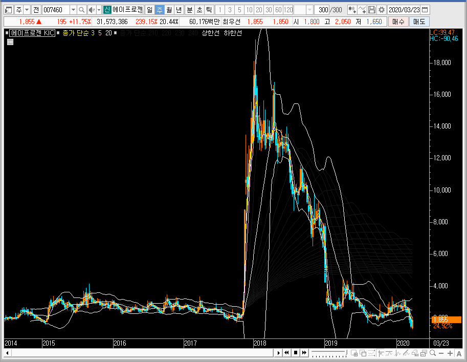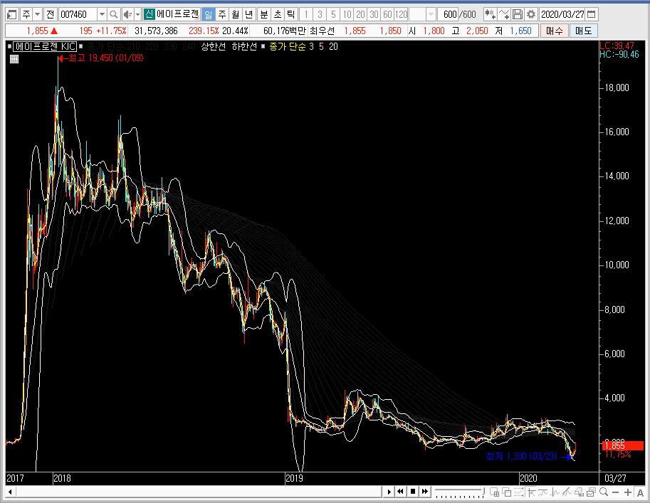 잘 알고 계시겠지만 에이프로젠 KIC를 포함해서 모든 종목은 차트만으로 얘기할 수 없습니다. 하루에서 수십 번, 수백 번을 왔다갔다하는 방식이 아니라면 차트의 비중은 생각보다 그리 크지 않습니다.