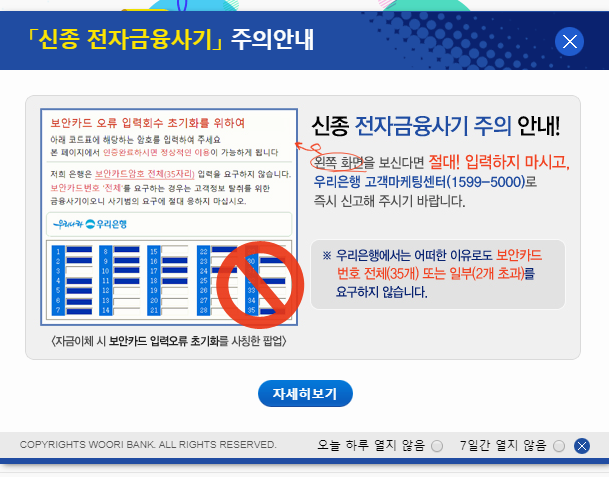 이렇게 우리은행의 공인인증서를 갱신하는 곳으로 이동하면, 알림 상자와 보안모듈에 대한 내용이 나올 거예요. 보안모듈은 은행에서 안전한 거래를 위해서 준비하는 것이 좋고, 알림 상자는 내용을 확인하시면 됩니다.