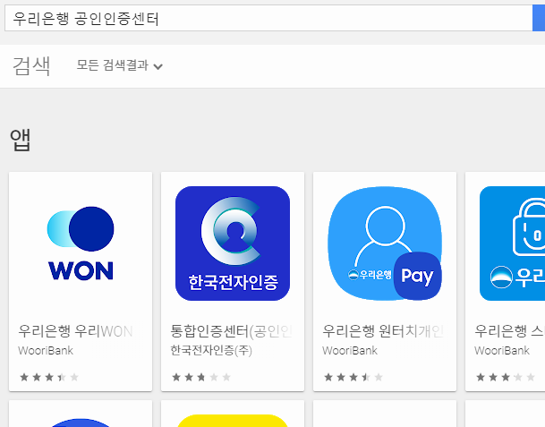 스마트기기로 금융 업무를 처리하는 경우가 많다면, 아무래도 앱이 더 좋겠죠. 앱은 플레이스토어를 열고 우리은행을 검색해보시면 됩니다. 그럼 간단히 찾으실 수 있을 거예요.
