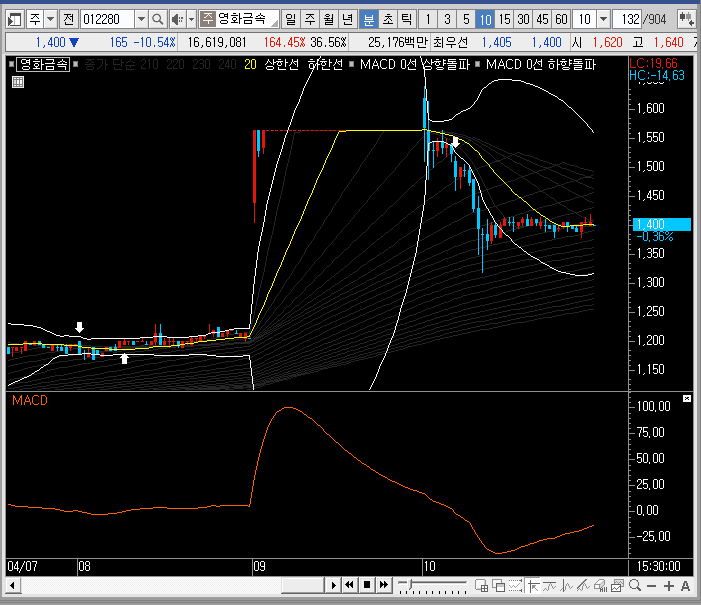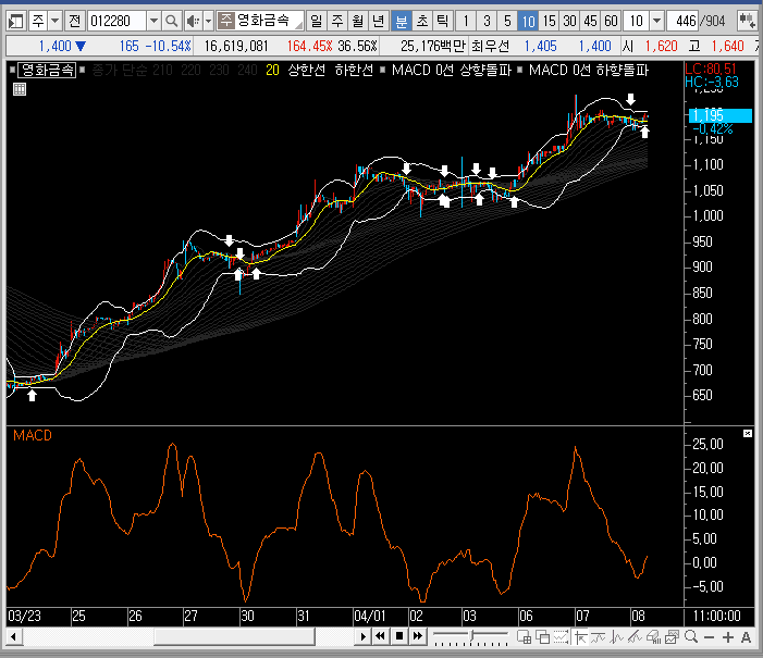 지금 나오고 있는 양봉은 그대로 양봉마감이 될 확률이 높습니다. 다만, 이미 영화금속의 주가는 목표가를 건드린 상황입니다. 즉, 지금부터는 가늠할 수 없는 영역입니다.