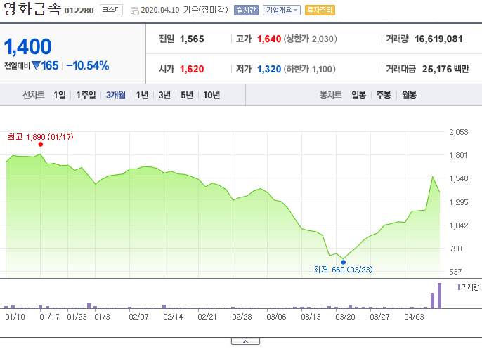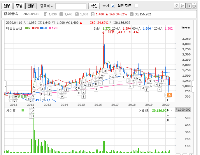 그래서 지금부터 정리하게 될 영화금속의 주가에 대한 정보들은 그냥 이 종목을 이렇게 생각하는 사람도 있구나 정도로 봐주시면 좋을 것 같습니다.