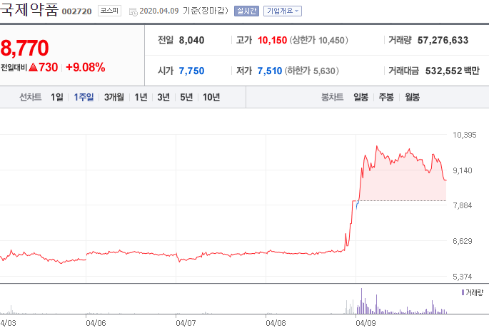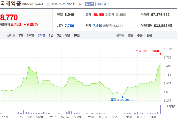 국제약품 주가의 분석 : 회사 이름만 봐도 지금 왜 오르는 것인지 알 수 있을 것만 같은 종목인데, 실제로 뉴스들을 검색해보면 우리가 알고 모두가 알고 있는 그 재료의 영향을 받고 있죠?