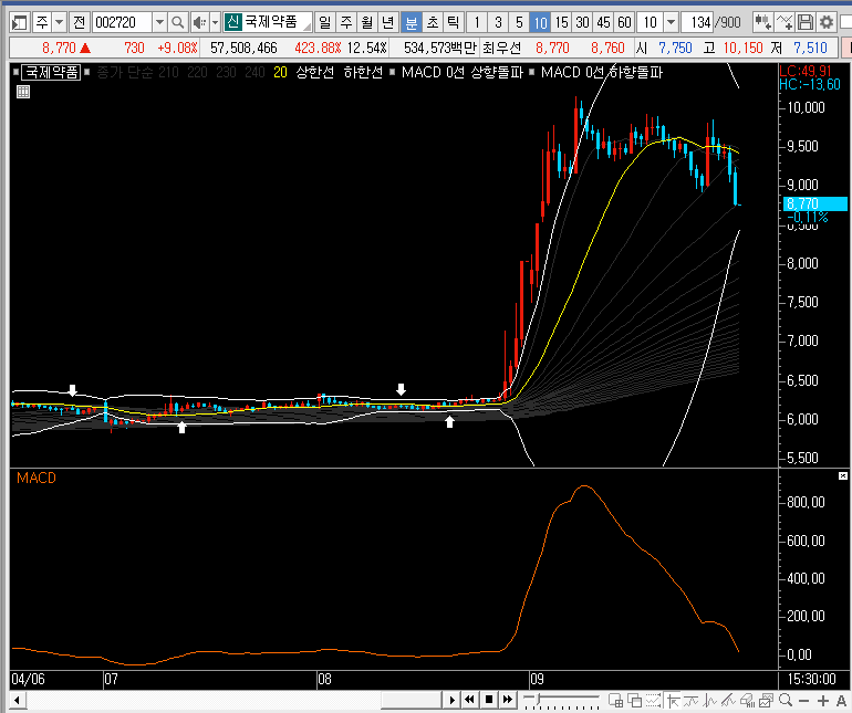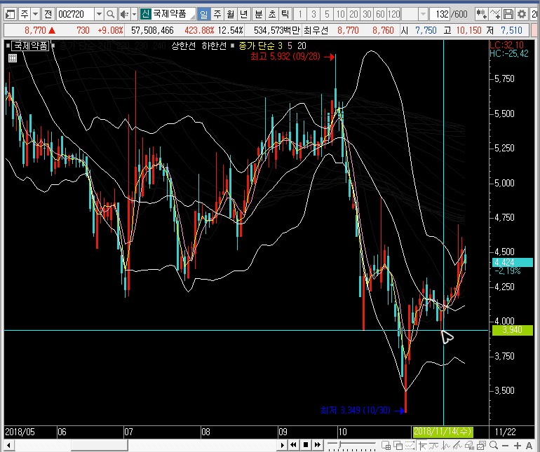 제가 정말 매매를 잘 하는 사람이라 해도 정지된 차트를 보고 국제약품의 주가를 얘기하는건 아무런 의미가 없을지도 모르겠습니다. 더욱이 저는 전문가가 아닙니다.