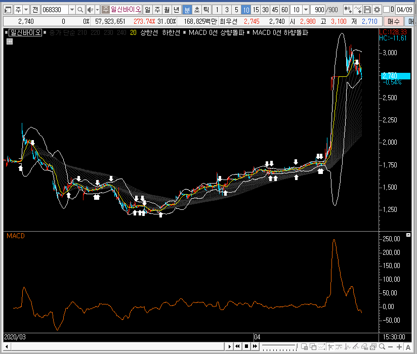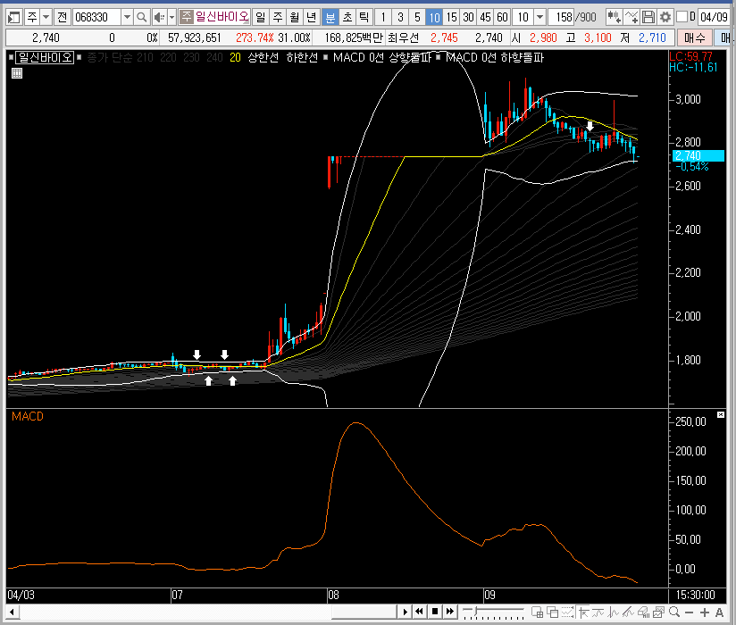 패턴상 일신바이오는 바로 상승할 확률이 높기는 한데, 저는 바로 상승한다면 따로 공략을 하지 않을 듯합니다. 급하게 오르는 종목은 어설프게 건드리면 오히려 나쁜 결과가 생길 수 있기 때문이죠.