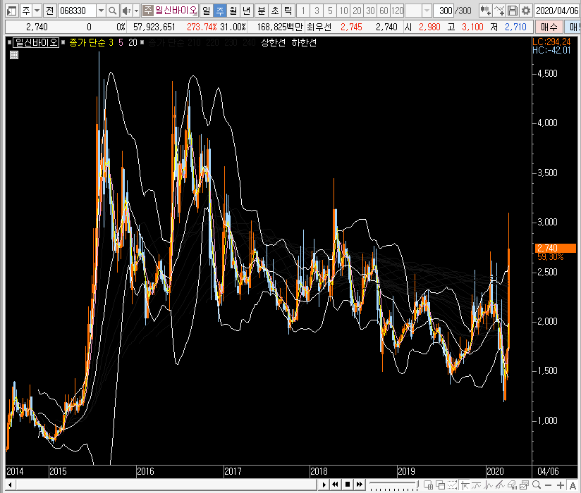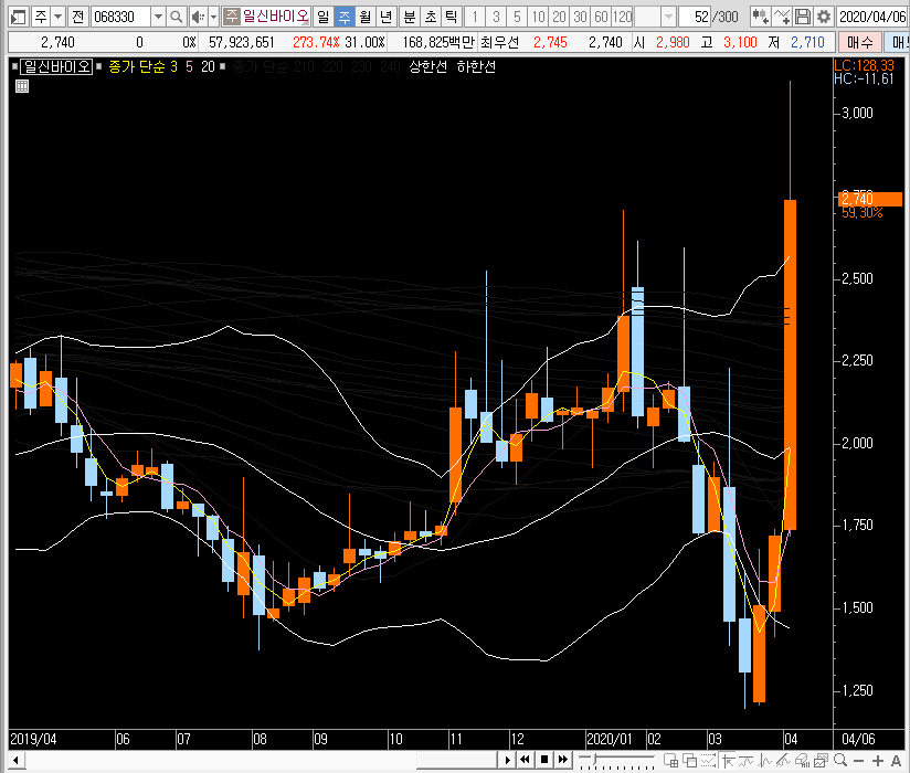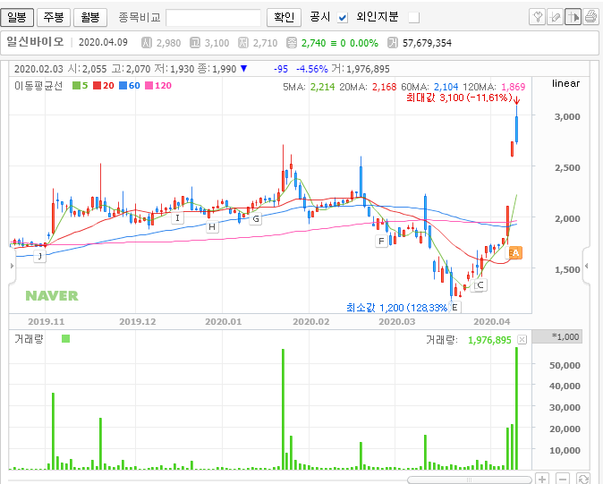 그래서 재료만 보면 분명 일신바이오의 주가에 공략해보는 것은 매력적으로 느껴집니다. 하지만 이미 많이 오른 종목이라는 함정이 있죠. 그래서 차트를 보면서 대응해야 할 듯합니다.