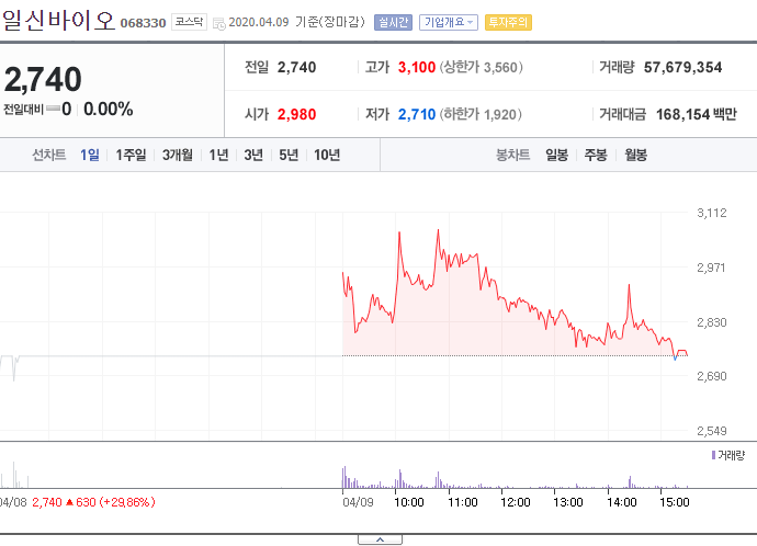 지금 적어두게 될 내용들은 그리 신뢰할 수 없는 정보이니, 그냥 일신바이오의 주가를 이렇게 생각하는 사람도 있구나 정도로 봐주시면 가장 적당할 것 같습니다.