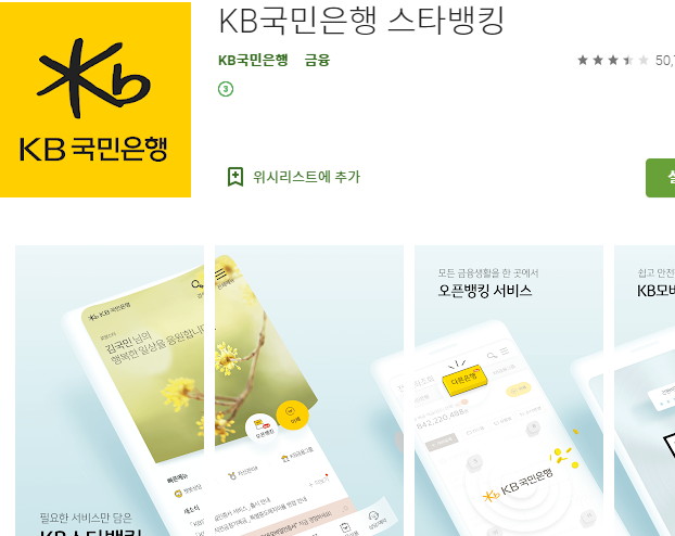 앱으로 작업을 할 땐 아래 그림과 동일한 앱을 받아서 실행하면 됩니다. 그리고 이어지는 과정은 PC 브라우저에서 국민은행 공인인증서를 재발급을 한 것과 별반 다른 부분이 없습니다.