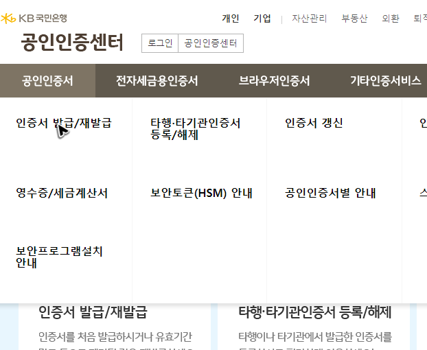 국민은행 공인인증서 재발급 방법