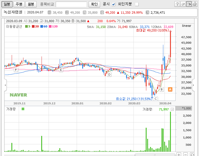 그래서 당장에는 매수세가 들어왔으니, 조금 더 상승할 수 있겠지만, 새로운 재료가 나온다거나 기대감의 불확실성이 확실해지는 것이 아니라면 장기적인 관점으로 녹십자랩셀의 주가를 보는 것은 경계해야 하지 않을까 조심스레 생각합니다.