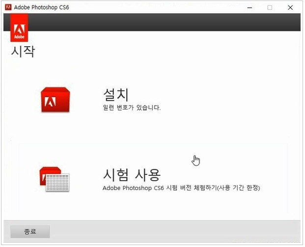 참고로 이렇게 포토샵 무료로 다운을 하는 것은 시험 버전을 받는 것입니다. 그래서 준비할 땐 시험 사용 항목을 선택해서 과정을 진행해주셔야 해요. 그리고 시험사용을 선택하면 로그인 화면이 나오는데, 로그인하지 않아도 됩니다.