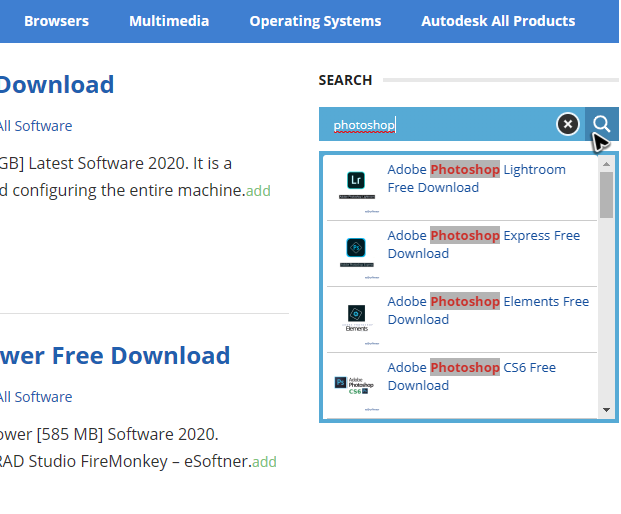 위에 적어둔 주소로 찾아갔다면, 브라우저의 크기를 최대로 맞춰주세요. 그럼 오른쪽에 검색상자가 나오는데, 우리는 포토샵 무료를 다운하는 것이 목적이니 photoshop을 찾으면 됩니다.
