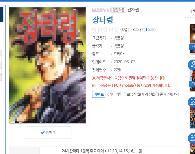 찾아간 뒤에 카테고리 메뉴를 눌러보면 아시겠지만 조금 특이한 부분이 있습니다. 비록 무료 만화라 해도 한 권을 읽으면 하루가 지나야 다음 권을 읽을 수 있어요.