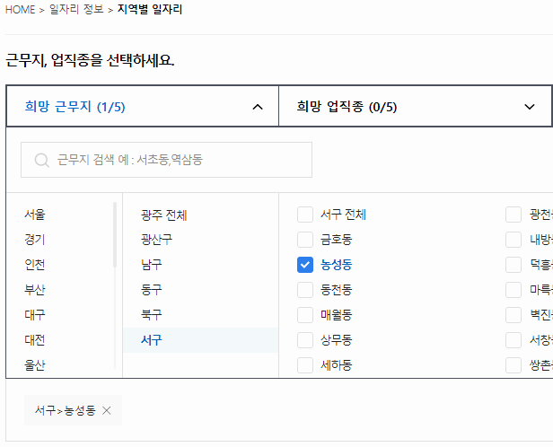 여담으로 지역이 정리되어 있었던 화면에서 지역 버튼을 누르고 페이지 이동을 한 뒤에 상단을 살펴보면 벼룩시장 구인구직이 다시 한 번 정리되어 있으니, 이 부분을 활용해보셔도 좋을 것 같아요. 이상입니다.