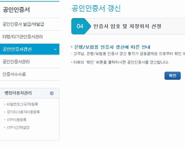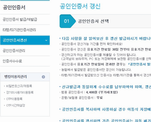 만약 사용하고 있는 파일의 사용기간이 30일 이내로 남은 상황이라면 발급이나 재발급이 아니라 갱신을 해주어야 하는데, 이 부분 역시나 농협의 공인인증센터에서 요구하는 정보를 채우기만 하면 되니, 어렵지 않을 거예요.