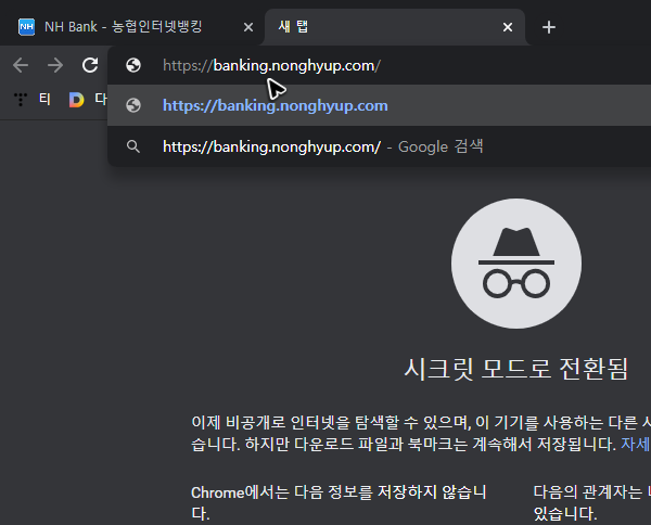 아는 사람만 찾아갈 수 있는 어떤 비밀스러운 사이트가 아니죠? 그래서 검색하면 사이트를 바로 찾을 수 있지만, 그래도 [banking.nonghyup.com]를 주소창에 입력해서 농협에서 공인인증센터의 홈페이지를 찾는 것이 더 간편합니다.