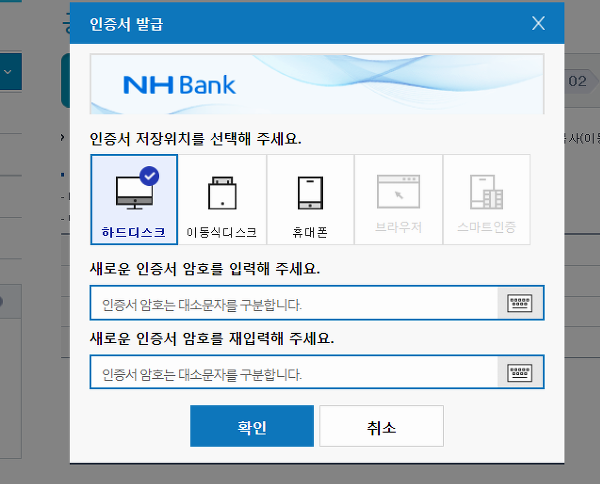 마지막 단계에서는 농협의 공인인증센터에서 파일을 보관할 위치를 선택하라는 내용이 나오는데, 저는 USB를 가장 편하게 생각하는데, 그냥 이 부분은 인터넷 뱅킹을 자주 하는 위치에 따라 선택을 하시면 될 것 같아요.