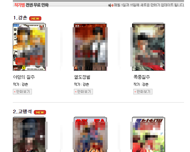여기는 앞서 얘기한 페이지보다 전문적이며, 전체가 무료만화를 보는 곳이라 할 수는 없습니다. 하지만 페이지를 찾아간 뒤에 상단의 카테고리 메뉴를 보면 우리가 찾고 있는 그 메뉴를 확인할 수 있을 거예요. 물론 클릭하면 됩니다.