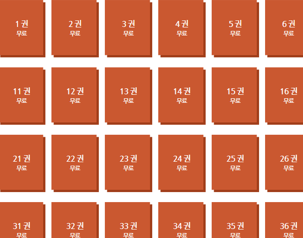 카테고리 메뉴를 누르고 다음 페이지로 이동하면 볼 수 있는 책 목록을 확인할 수 있을 거예요. 다만, 여기는 무료만화를 읽는 방식이 조금 특별합니다. 한 권을 다 읽으면 하루가 지나가 다음 권을 읽을 수 있어요.