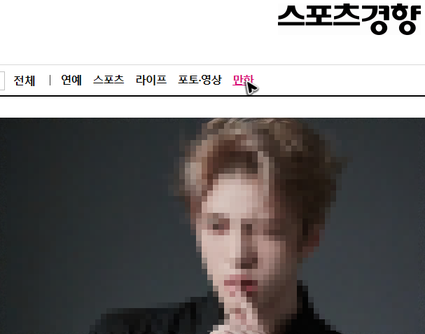 그리고 이렇게 비슷한 방식으로 무료만화를 보는 곳은 또 있습니다. 이번에는 주소창에 [sports.khan.co.kr]를 적고 이동을 해주세요. 그리고 마찬가지로 카테고리 메뉴를 클릭하면 됩니다.