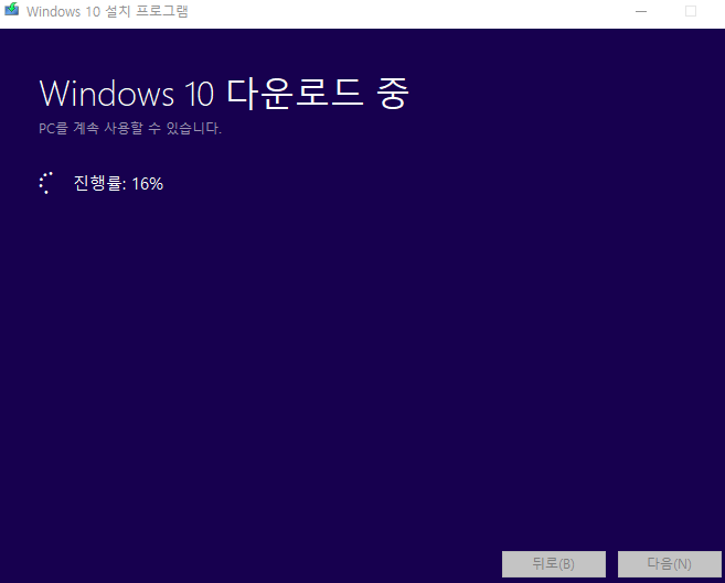 처음 파일을 실행하면 몇 가지 항목들을 준비한다는 내용이 나오는데, 그 상태로 기다리면 됩니다. 그리고 사용권에 대한 내용이 나오면 동의를 눌러야 윈도우10 usb 부팅디스크의 만들기를 진행할 수 있어요.