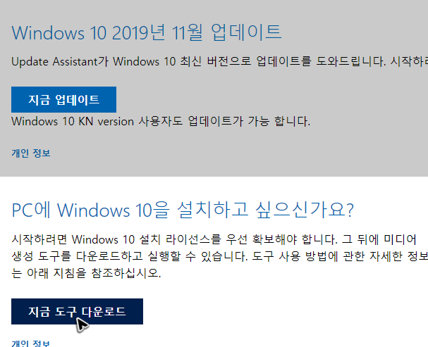 앞에서 얘기를 했듯이 공식 도구만 있으면 됩니다. 그리고 공식 도구는 다른 자료실을 통해서 구하는 것보다는 공식 홈페이지[microsoft.com/ko-kr/software-download/windows10]에서 받아서 윈도우10 usb의 부팅디스크 만들기에 쓰는 것이 안전해요.