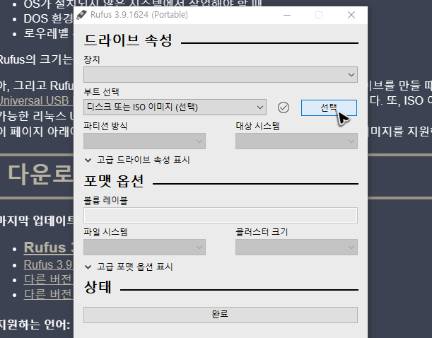 그리고 가끔씩 이렇게 윈도우10 usb 부팅디스크의 만들기를 하다 보면 오류가 생기는 경우가 있는데, 이럴 땐 이미지를 받아주세요. 그리고 아래 그림의 주소에서 Rufus도 받아주세요.