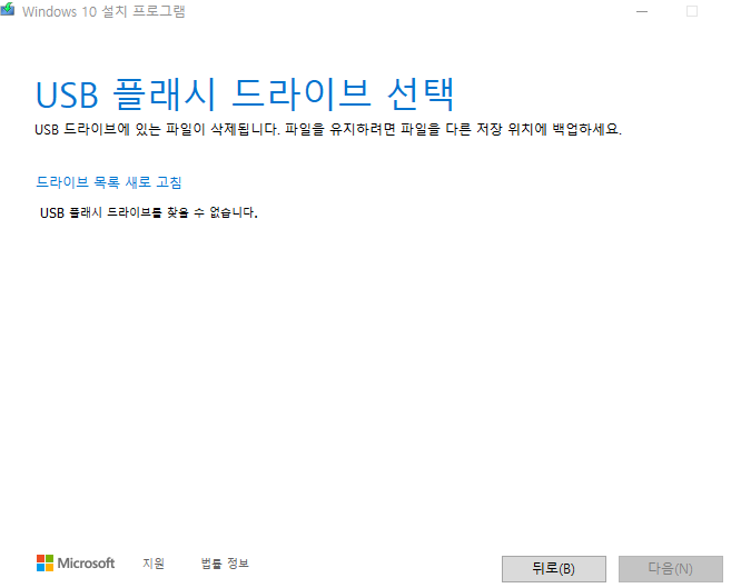 저는 지금 따로 컴퓨터에 연결해둔 장치가 없어서 목록이 보이지 않는데, 목록이 보이면 항목을 선택하고 다음을 누르면 윈도우10 usb 부팅디스크의 만들기가 될 것입니다. 엄청 간단하죠?
