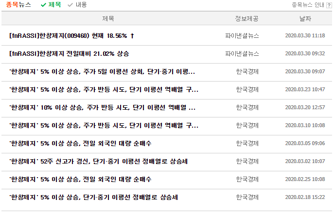 한창제지 주가 체크
