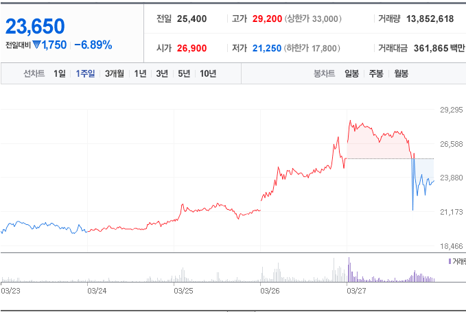 그래서 확대한 뒤에 코미팜의 주가를 살펴보면 안타깝지만 이미 많은 상승이 나온 상태입니다. 즉, 재료를 갖고 차트를 그리는 종목이니, 재료의 힘이 모두 반영된 상황일 수 있습니다.