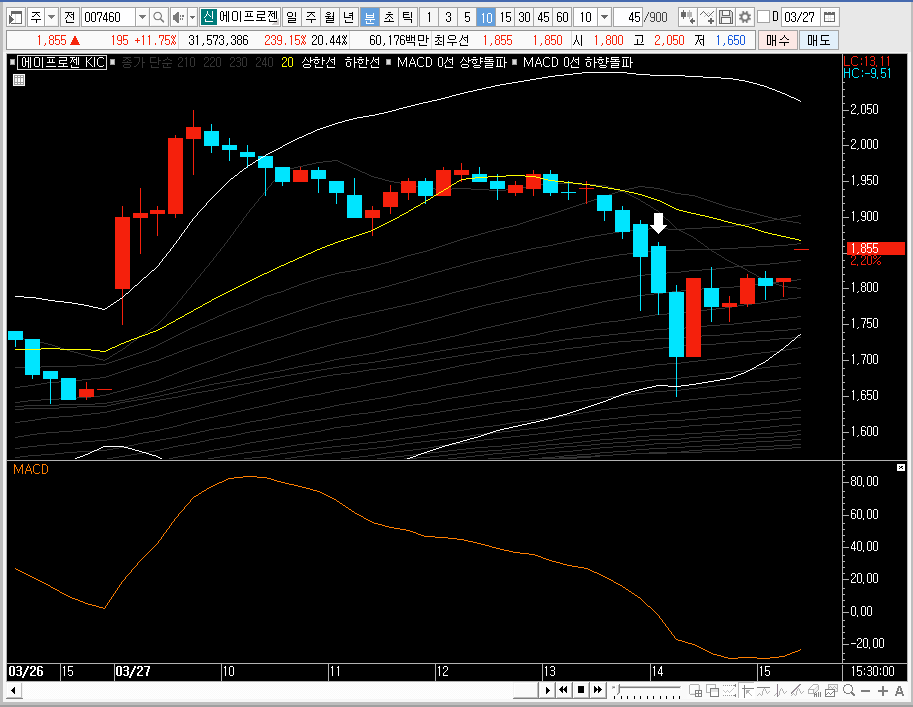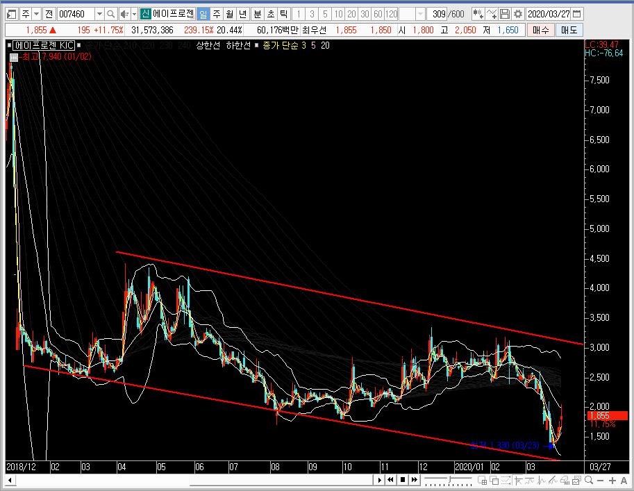 잘 알고 계시겠지만 에이프로젠 KIC를 포함해서 모든 종목은 차트만으로 얘기할 수 없습니다. 하루에서 수십 번, 수백 번을 왔다갔다하는 방식이 아니라면 차트의 비중은 생각보다 그리 크지 않습니다.