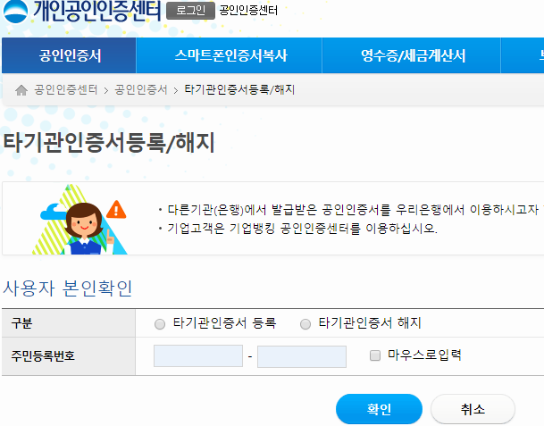 우리은행 공인인증서 재발급