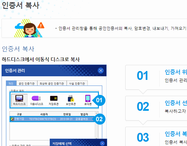 사이트를 통해서 우리은행의 공인인증서를 만드는 것 외에 사용 기간이 한 달 이내로 남았을 때 갱신하거나, 파일을 복사하거나, 폐기하거나 등등, 모든 파일 관리 메뉴는 그냥 사이트에서 요구하는 정보를 채우는 것이 전부입니다.